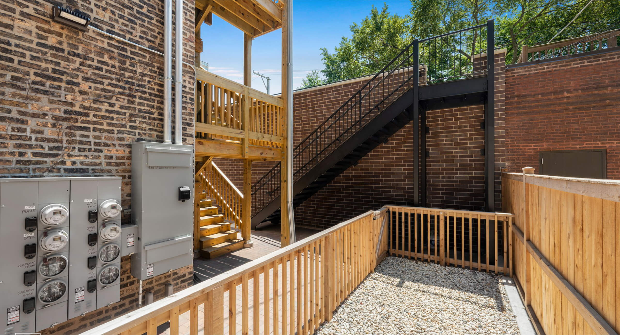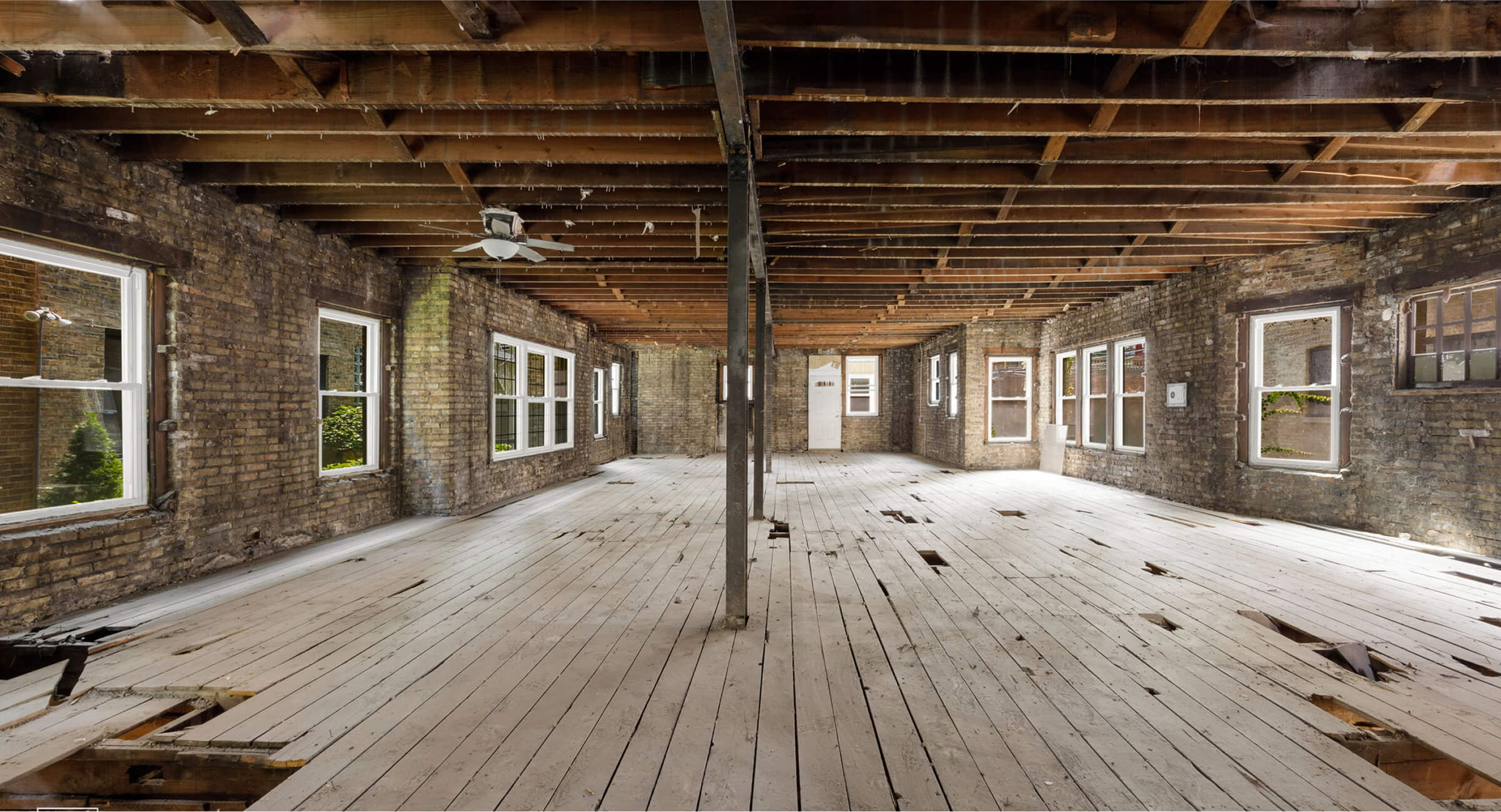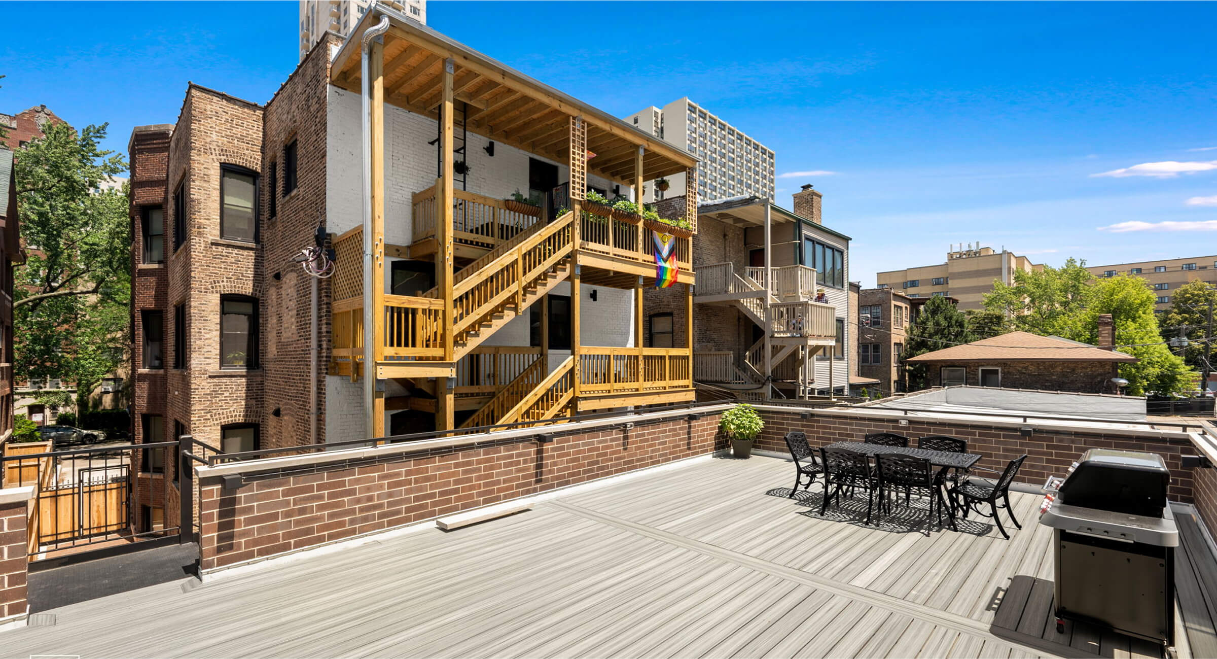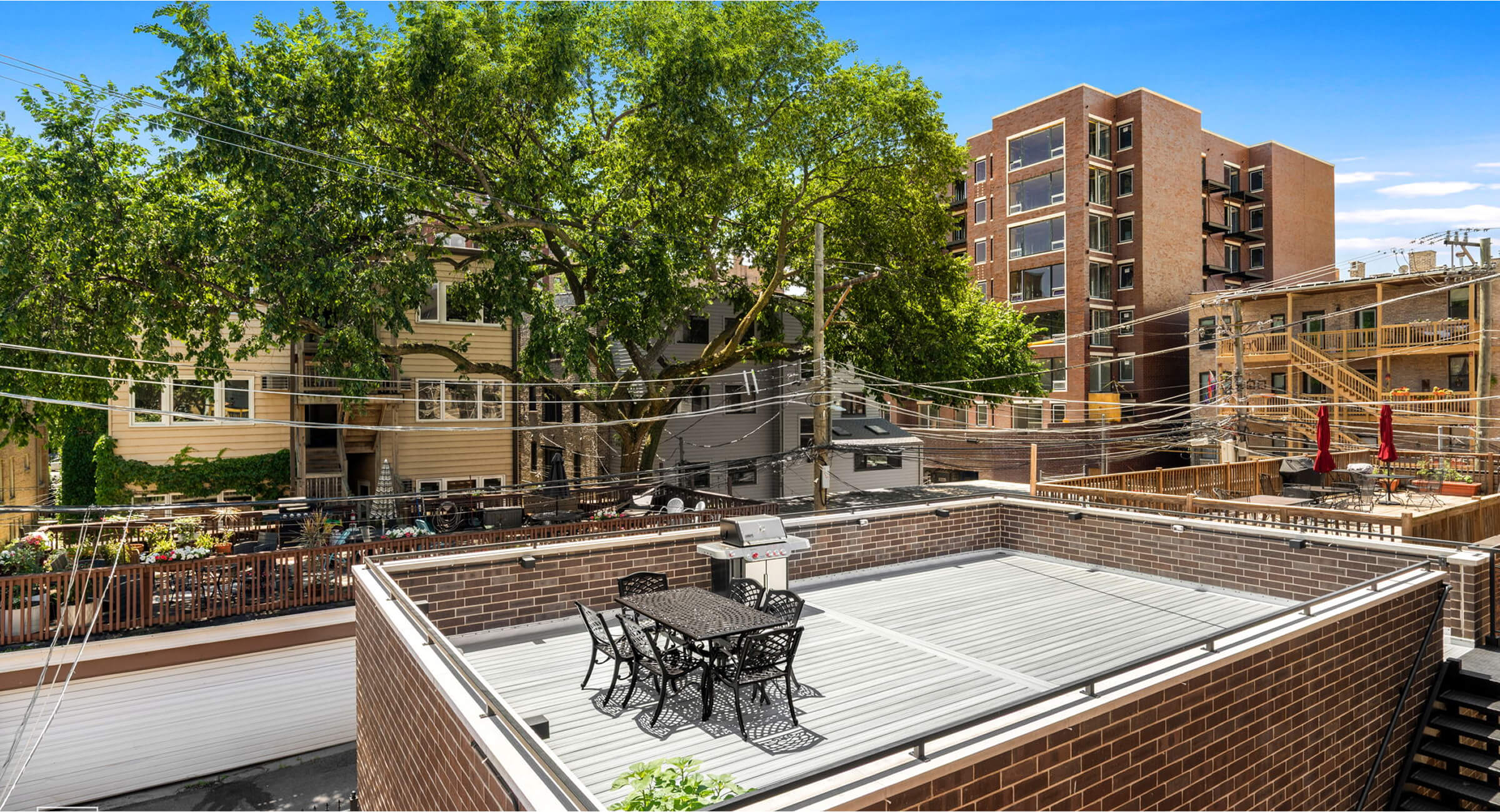 REBLD converted this historic three-flat near Chicago’s lakefront into seven units in less than seven months, allowing the building to be fully-leased up prior to completion of construction. Fully-gutting the existing condition down to the brick, the team breathed new life in to this early 1900s building with custom condo-quality finishes, all new mechanicals, windows, roof, porch and an added garage roof deck. The result is a stunning upgrade to the building that continues to pay respect to its historical details by incorporating design elements like custom curved windows, original clay tile roofing, and renovation of the original portico.