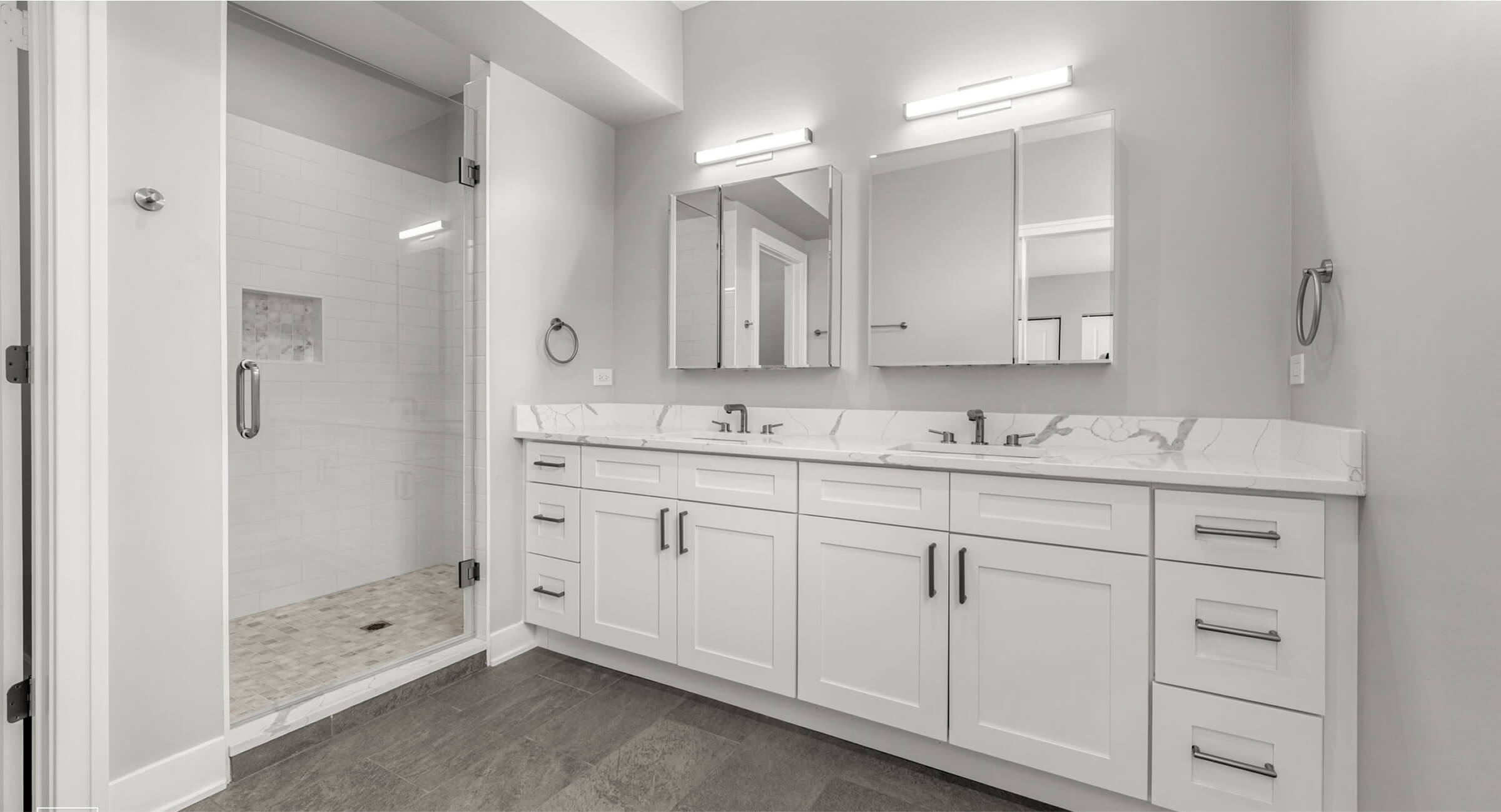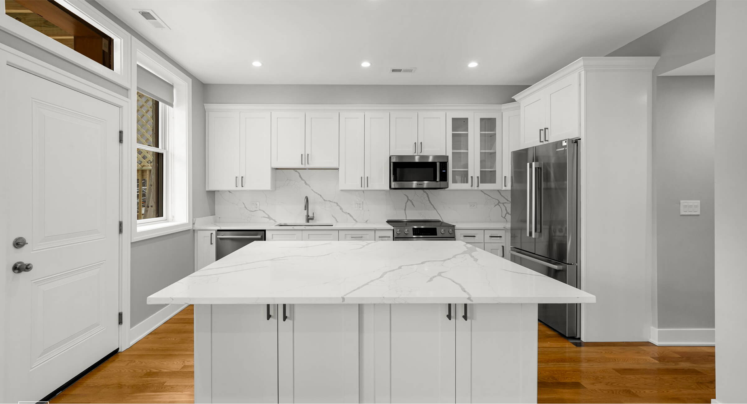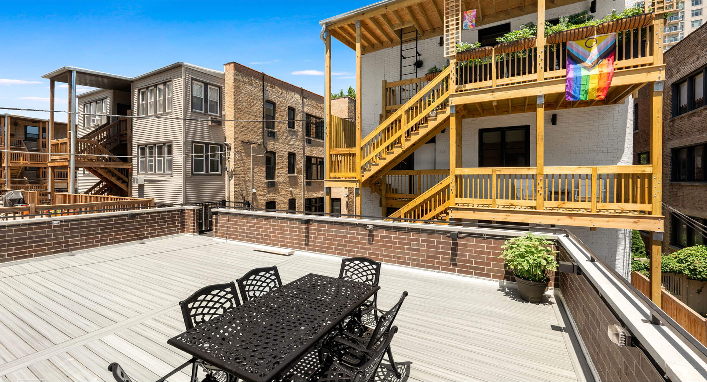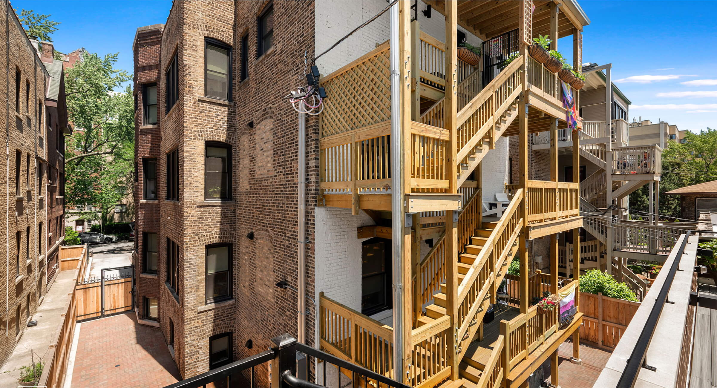 REBLD converted this historic three-flat near Chicago’s lakefront into seven units in less than seven months, allowing the building to be fully-leased up prior to completion of construction. Fully-gutting the existing condition down to the brick, the team breathed new life in to this early 1900s building with custom condo-quality finishes, all new mechanicals, windows, roof, porch and an added garage roof deck. The result is a stunning upgrade to the building that continues to pay respect to its historical details by incorporating design elements like custom curved windows, original clay tile roofing, and renovation of the original portico.